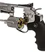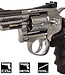 This 2.5" Chrome revolver licensed by Dan Wesson, offers realistic shooting fun in a handy size. It has authentic markings and a individual serial number stamped into the frame. The revolver features a double action trigger system and adjustable rear sight for extra realism and accuracy. The Dan Wesson revolver is made of metal except for the ergonomic grip constructed in hard ABS plastic. The 12g CO2 cartridge is stored in the grip and is easily accessed by sliding the grip back - easy-load style. Each of the 6 cartridges holds one 4.5mm BB and is placed in the metal cylinder that rotates as each round is fired. The revolver comes with an attachable tactical rail and 6 cartridges.