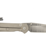 The Handle: Two thick slabs of titanium feature chamfered edges for a smooth, comfortable grip. Forward cutouts allow the user access to the frame locking mechanism and a comfortable place for fingers to rest. The front piece is hand finished with a unique Reverse Silver color/pattern while the reverse is entirely sandblasted creating a matte grey appearance with very fine texturing. The grip is welcoming in the majority of medium to large hands. The Integral Frame Lock was created by Mr. Chris Reeve and continues to be a staple in the knife making industry. It's reliable, easy to use and virtually maintenance free. All titanium hardware comes standard on the Sebenza including the silver barrel spacer and Bead lanyard-attached spacer at the end. A titanium pocket clip is attached to the back for tip up right hand carry. It can be easily removed with the supplied Allen wrench. Also included is a single tube of fluorinated grease, microfiber cloth, large leather slip pouch and information packet.
