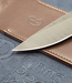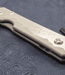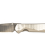 Blade: The Large version gives its user 3.5 inches of polished, shaving sharp cutting edge built from premium, Chad Nichols stainless Ladder pattern Damascus steel. It is hollow ground for supreme sharpness and fully usable for day to day. A thumb ramp on the spine has perfect jimping, nearly an inch and perfect placement. The rest of the spine is crowned and smooth. This version features a single Silver titanium thumb lug opener allowing the user to open the blade from the front side. It operates on a pivot system using oversize bronze washers with grease-filled pockets for smooth, no friction operation.