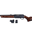 Intuitive, quick target acquisition is achieved with an adjustable full aperture rear sight and screw-on front post sight. The longer sight radius (when compared to a handgun) is far more accurate at distance and forgiving of mistakes. For those that prefer illuminated or magnified optics, the receiver is drilled and tapped for a Weaver 63B base. In close quarters, the Homesteader is highly maneuverable, weighing just 6.6 pounds and under 36” in overall length. Perceived recoil is counteracted with a reciprocating mass inside the forearm, getting you back on target faster from shot to shot and inspiring confidence for the recoil sensitive. For even greater control, leather-like texturing on the genuine American walnut stocks and a soft rubber recoil pad provide non-slip contact points.