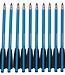 Each arrow is constructed of aluminum and boats perfect balance for downrange accuracy. The vanes are made of rubber and designed for ideal aerodynamics, while the riveted tips are glued into the shaft for reliable performance. The arrows are blue anodized for visibility inside the magazine and at the range.